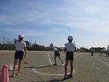 3、4年生チームは紅白ともにソフトボール投げを行っていました。